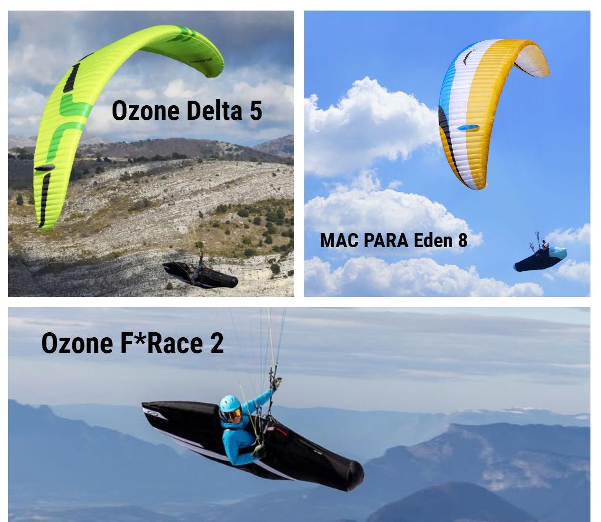 Einer der nächsten neuen Schirme von Ozone wird der Delta 5 (EN-C) als Zweileiner sein. Wir werden den Delta 5 sicher testen, um den Charakter des Delta 5 kennenzulernen, aber aufgrund des eher hohen Gewichts von etwas über 5 kg werden wir voraussichtlich dann eher einen Alpina 5 (Leichtversion des Delta 5) als Demo anschaffen. Gleichzeitig erwarten wir in Kürze das neue Leichtgurtzeug F* Race 2, auf welches wir sicher einen genaueren Blick werfen werden. Neben Ozone bringt MAC PARA mit dem Eden 8 einen interessanten high-B auf den Markt, den wir sicher auch ausgiebig testen werden.